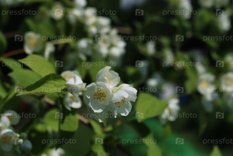 Дэйзи и жасминовый куст летом