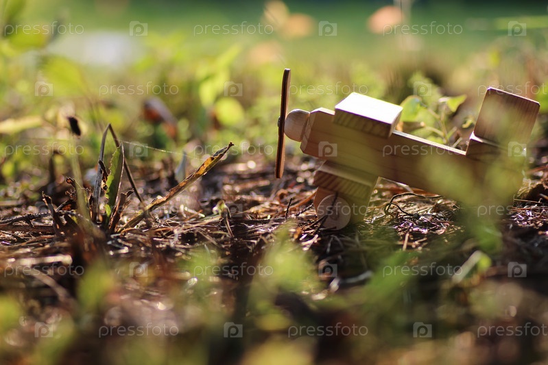 Деревянный самолет на земле в открытом воздухе