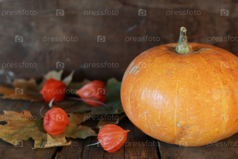 Тыква и свеча на старой деревянной