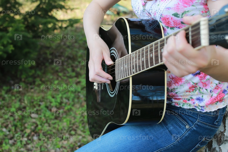 Гитара струнная женщина рука на открытом воздухе