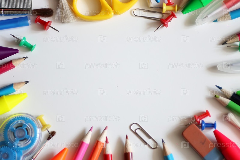 канцелярские принадлежности на белом фоне
