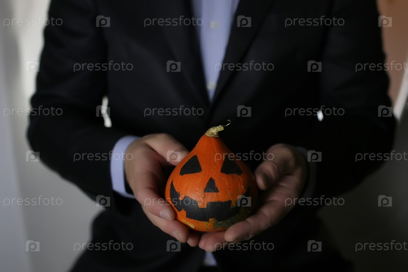Человек в костюме с тыквой