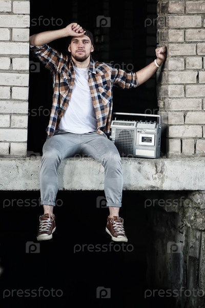 Бородатый мужчина хип-хоп танцор на мосту