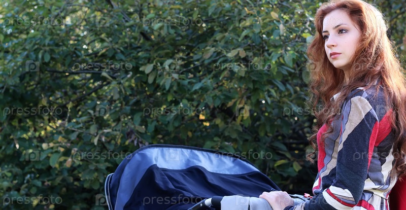 Женщины ходят на детской коляске летом