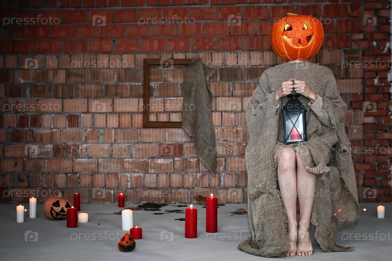Тыквенная голова монстра ужасов в помещении