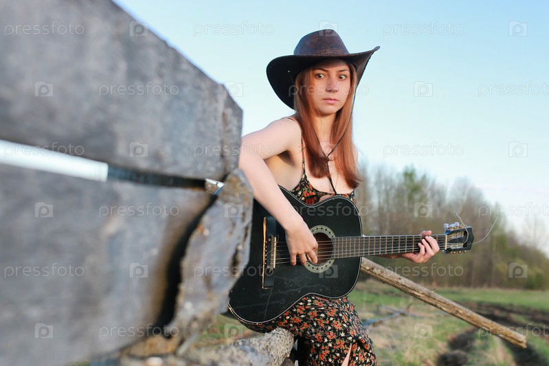 Ковбойская девочка - шляпа с гитарой