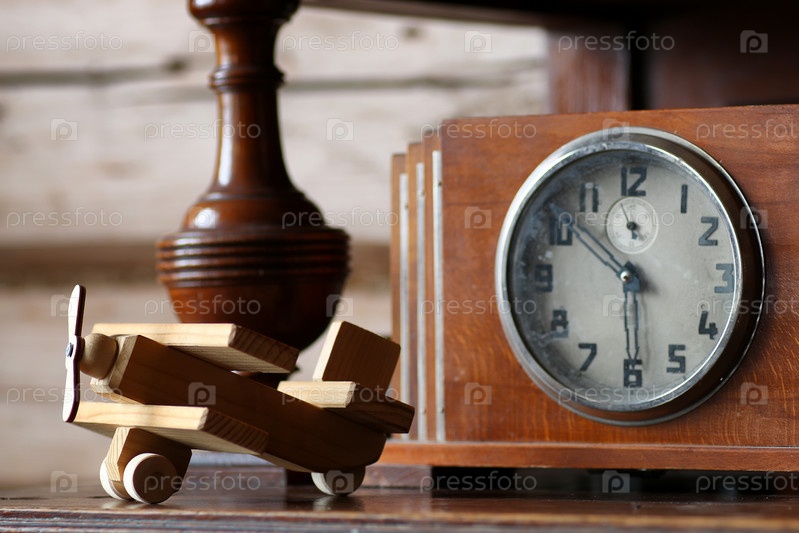 Деревянный игрушечный самолет на столе