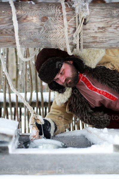 Традиционный зимний костюм крестьян средневековья в России