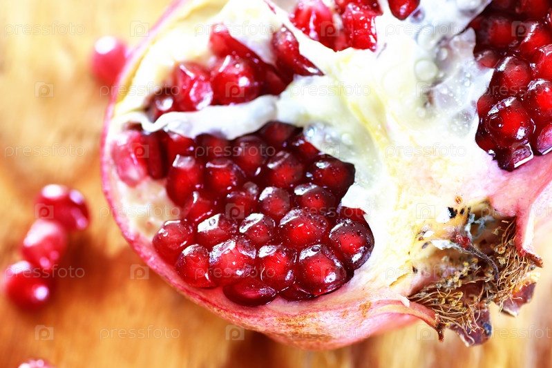 Деревянный фон с семенами граната
