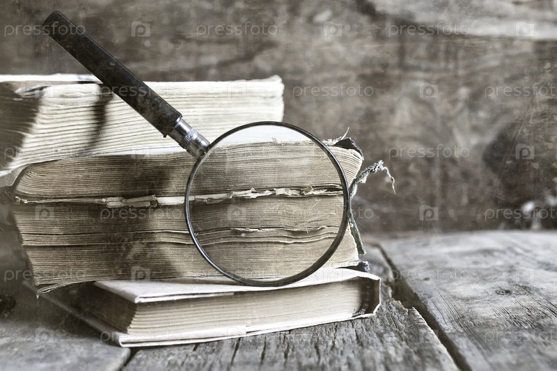 Старый эффект царапины на фото увеличительном стекле и старой книге