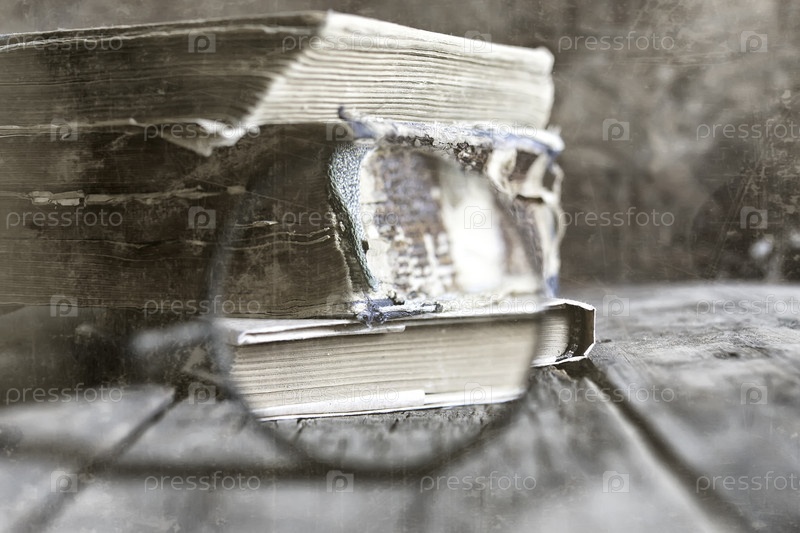 Старый эффект царапины на фото увеличительном стекле и старой книге