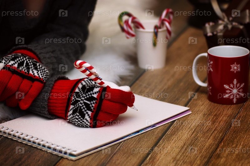 Девочка пишет перо на лист бумаги Рождественские пожелания