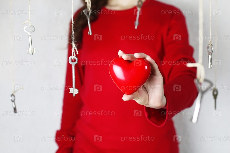 Женщина протягивает руку в форме красного сердца
