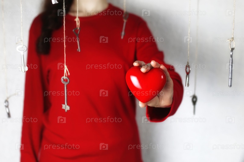 Женщина протягивает руку в форме красного сердца