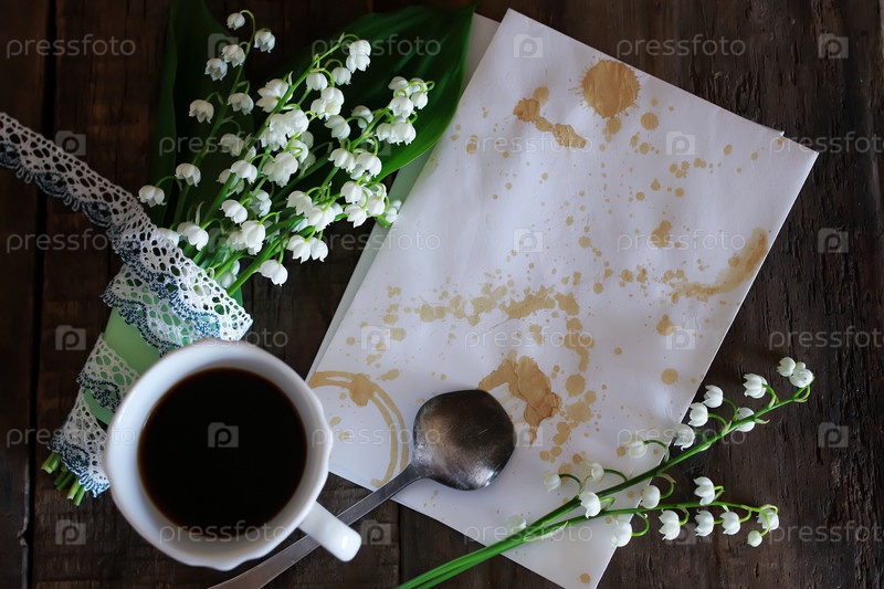 Букет лилий долины и утренний кофе