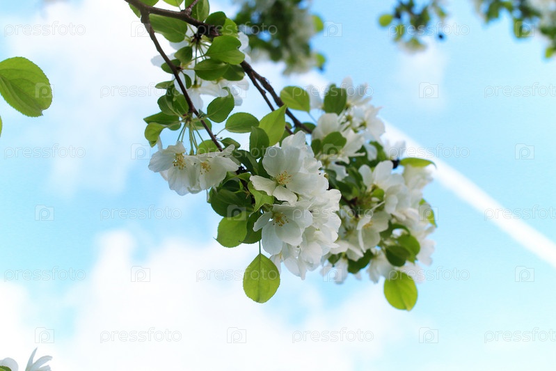 Ранневесенние цветения яблоня с ярко-белыми цветками