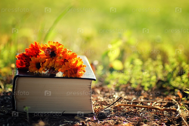 Книга с цветом на траве Открыть книгу