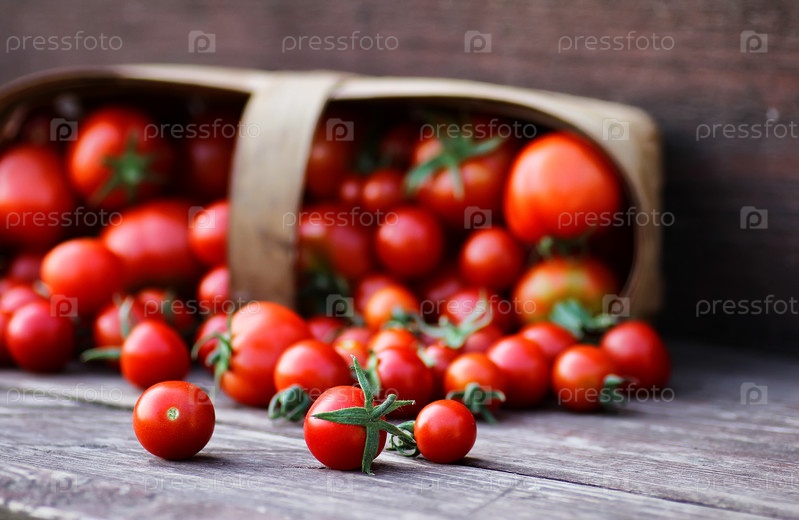Корзина урожая свежих томатов