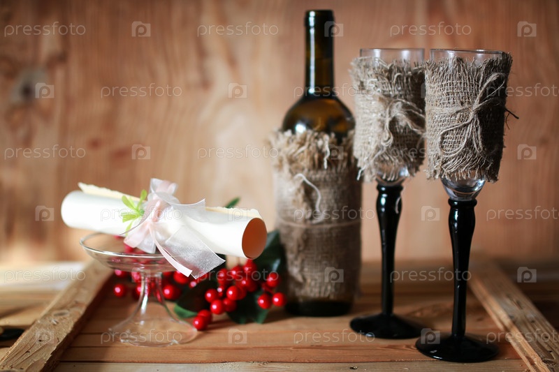 Винные бокалы приглашение деревянный фон