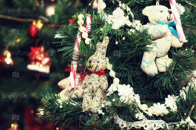 Рождественская елка украшена игрушками на Новый год