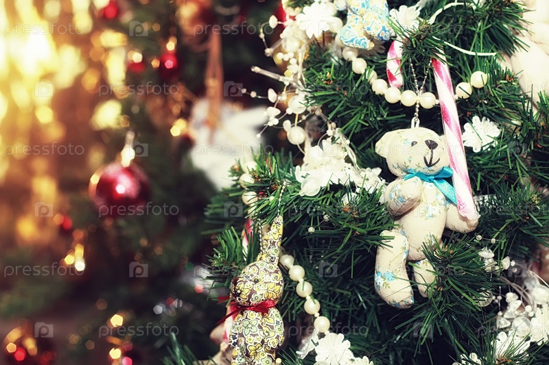Рождественская елка украшена игрушками на Новый год