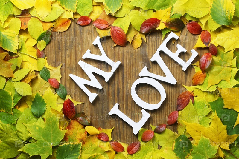 Осенние листья в форме сердца на деревянном столе