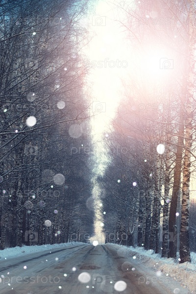 Дорожные деревья зимнего заката