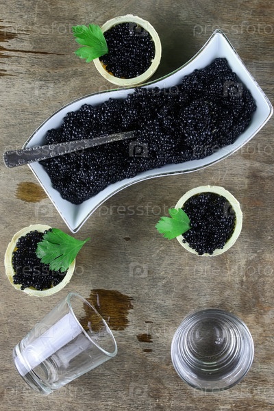 Черный икры на деревянном фоне