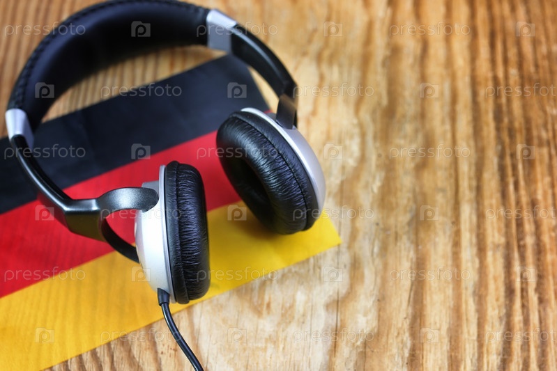 Курсовые языковые наушники и флаг на столе