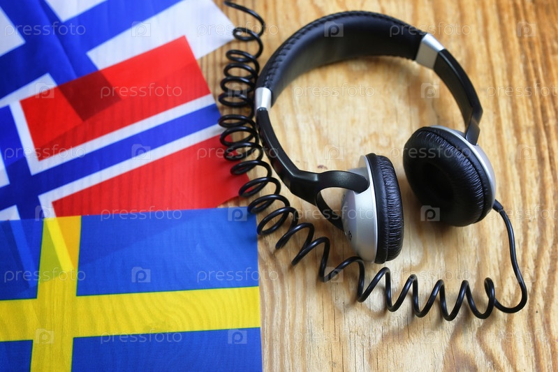 Курсовые языковые наушники и флаг на столе