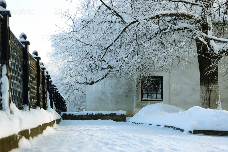 Ограждённый снегом зимний парк