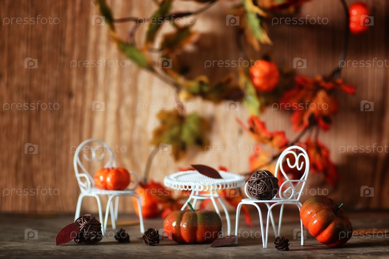 Свежая тыква во внутренней деревянной комнате на стуле