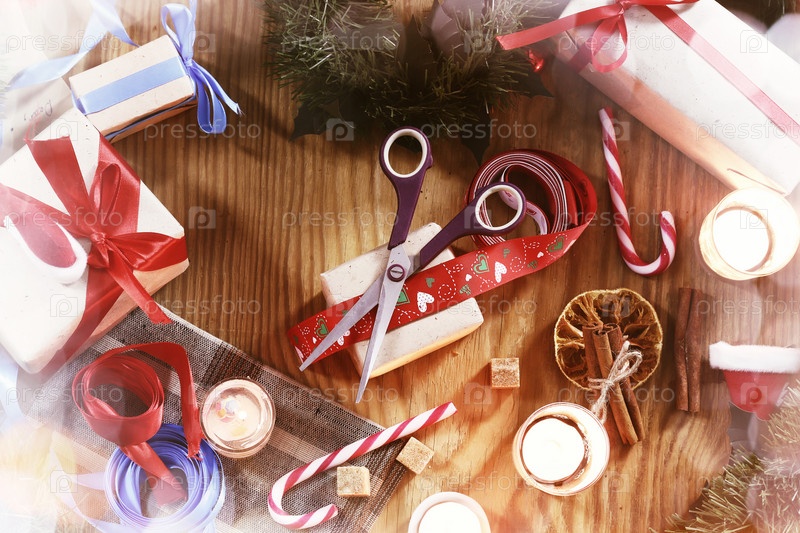 Рождественские подарки упаковка вручную дерево