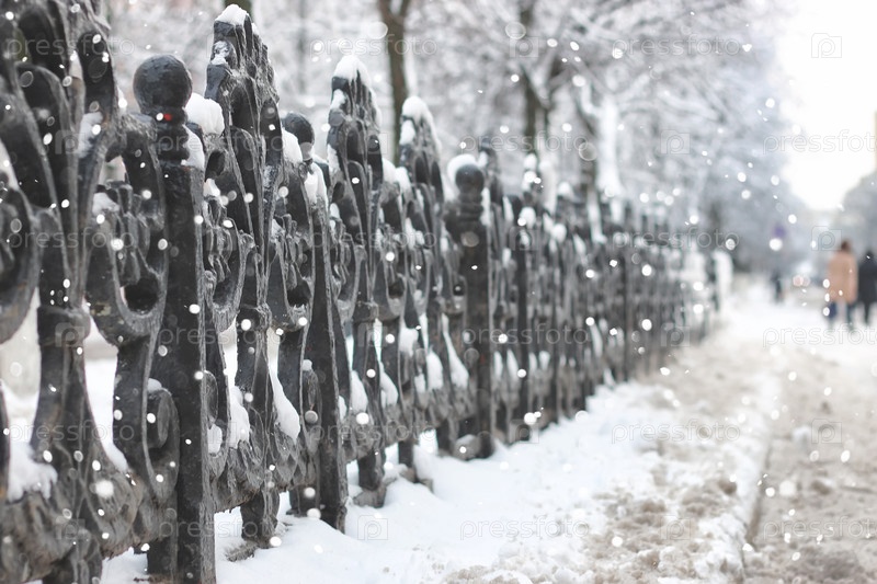 Старый черный ковальный забор