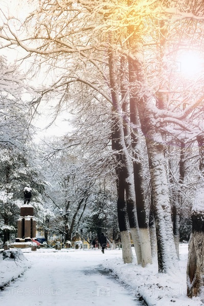 Парковый переулок деревянный путь зимой