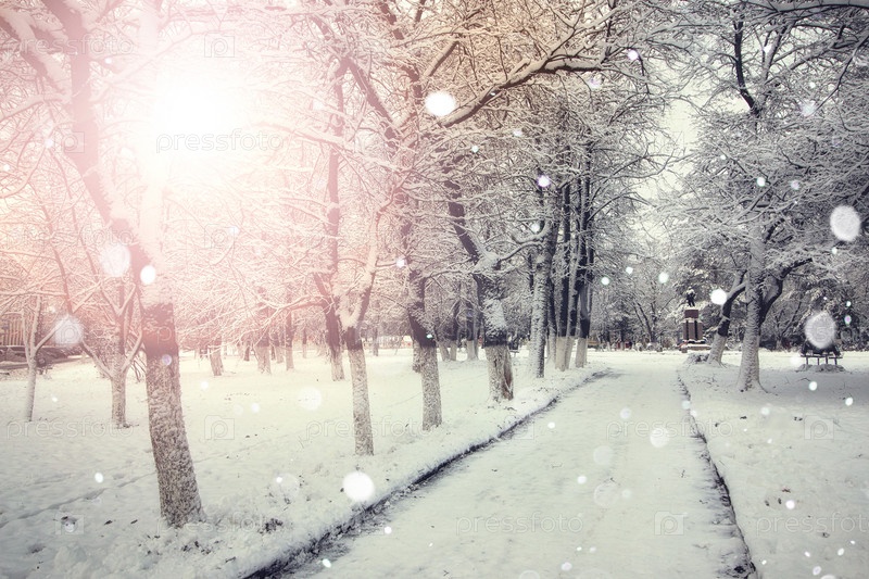 Пешеходная дорожка зимой ветви деревьев