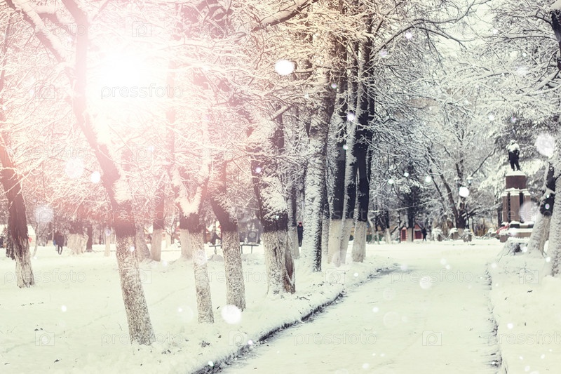Пешеходная дорожка зимой ветви деревьев