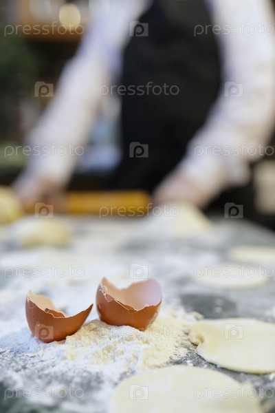 Различные ингредиенты для приготовления мучных продуктов на кухонном столе
