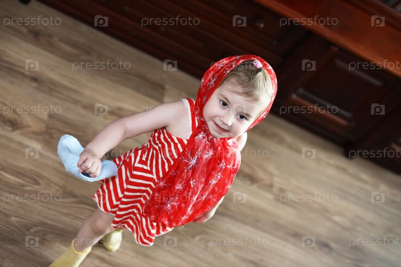 Маленькая девочка в платьях танцует с салфетом