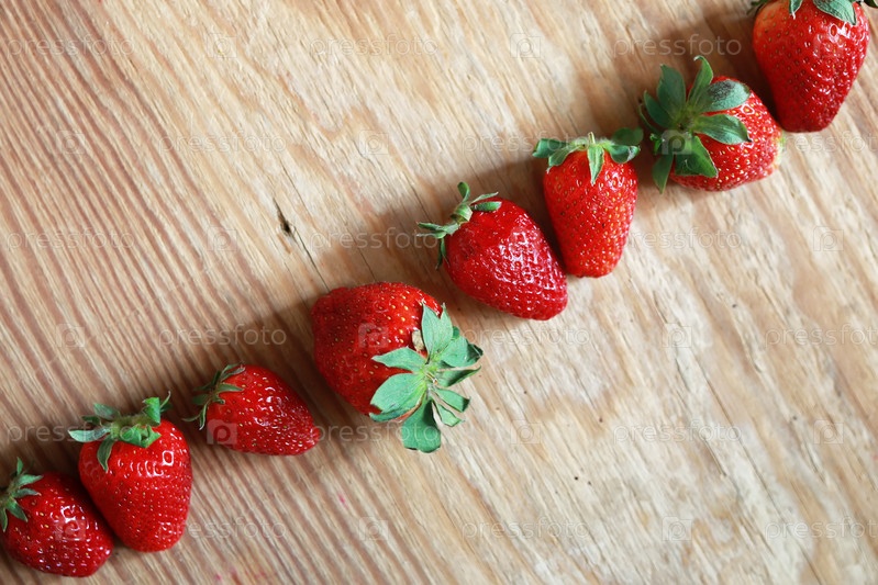 Красная клубника на деревянном фоне