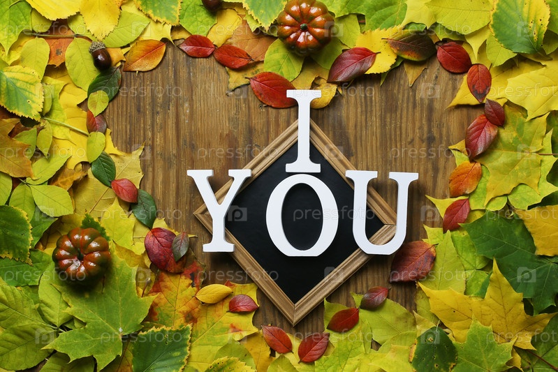 Осенние листья в форме сердца на деревянном столе
