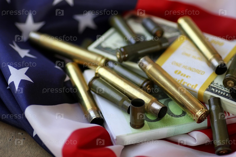 Пуля и деньги на американском флаге