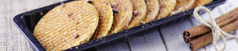 Горизонтальная панорама на заднем плане венских пластинок с карамелем