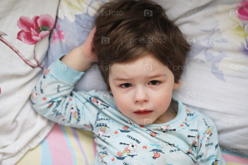 Портрет маленького ребенка, лежащего на подушке