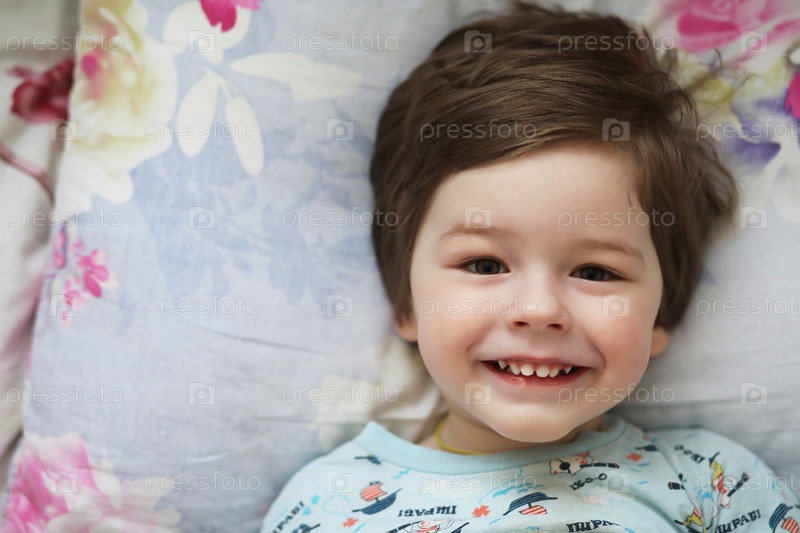 Портрет маленького ребенка, лежащего на подушке