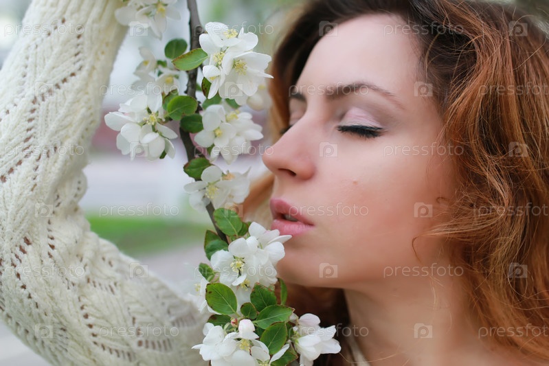 Женщина пахнет деревянным цветом
