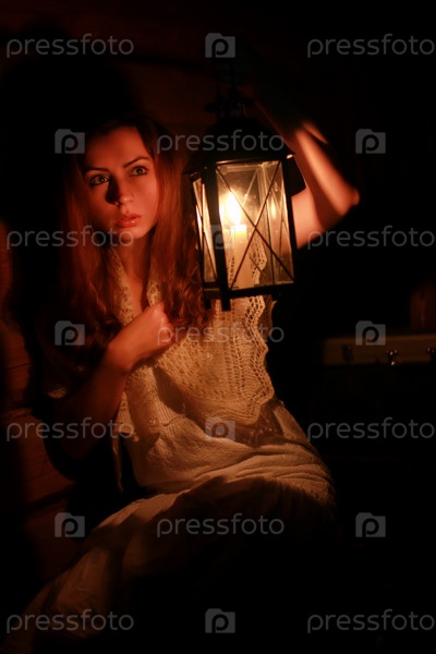 Женщина свеча лампа темная ночь