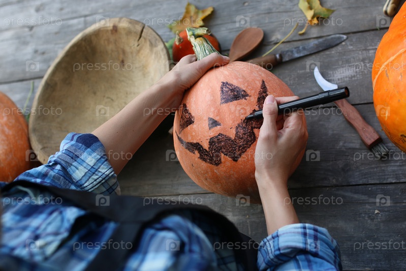 Вырезать тыквы на Хэллоуин