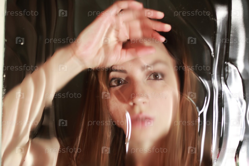 Лицо девушки за стеклом
