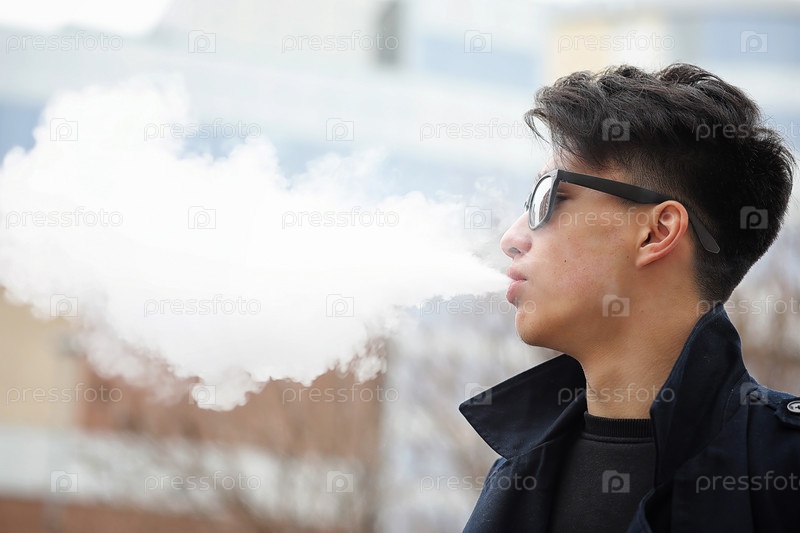 Молодой азиат курит на улице